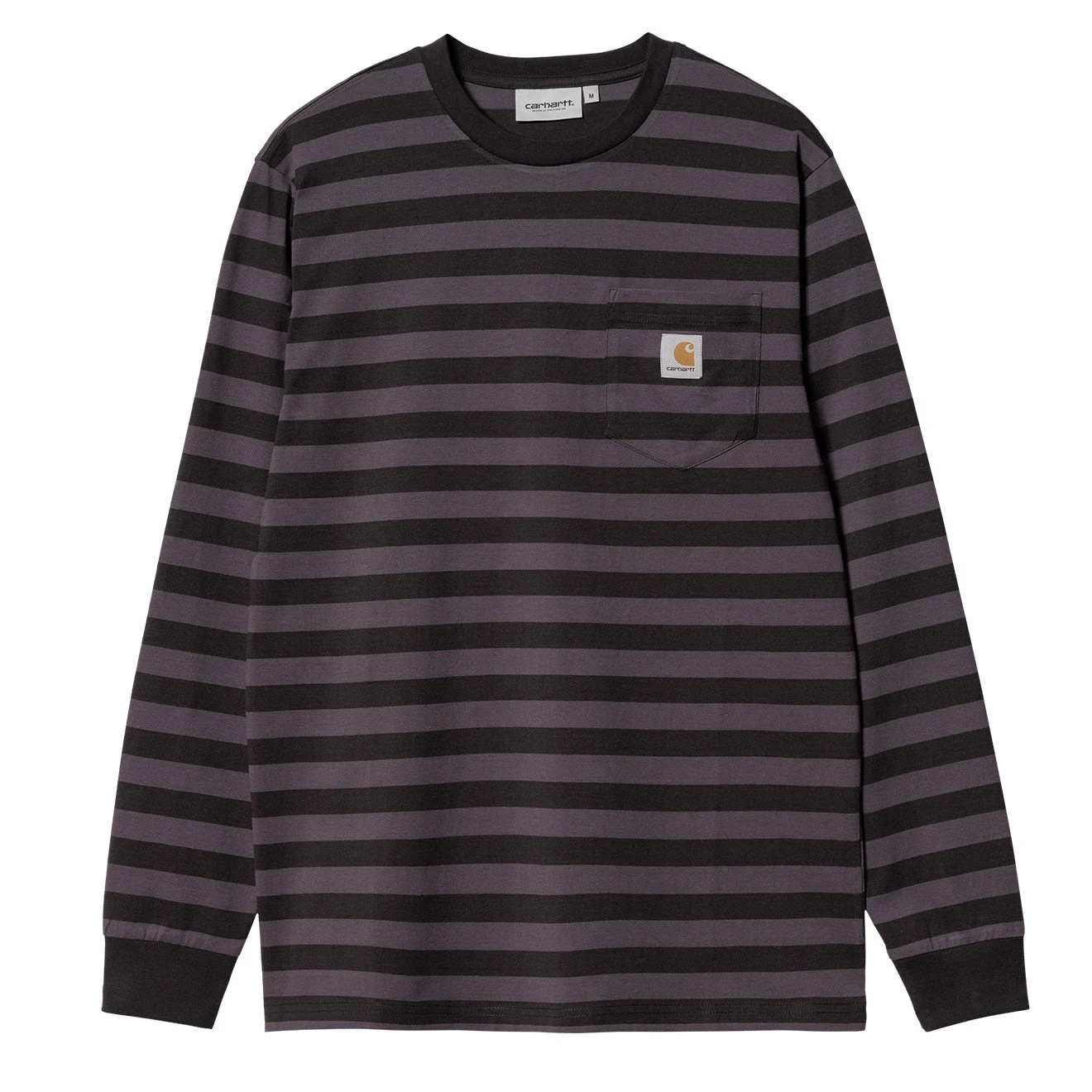 The Carhartt L/S Merrick Pocket T-Shirt is made from a midweight cotton jersey cut to a regular fit. Featuring all-over yard-dyed stripes for a deeper and longer lasting colour, the front stripes are smaller and on the back they’re a larger block stripe.