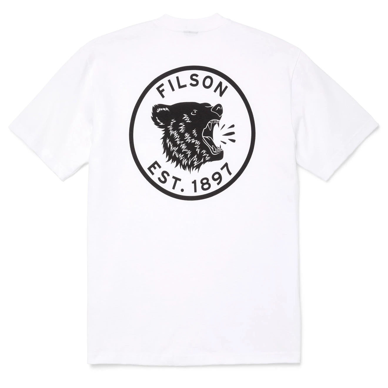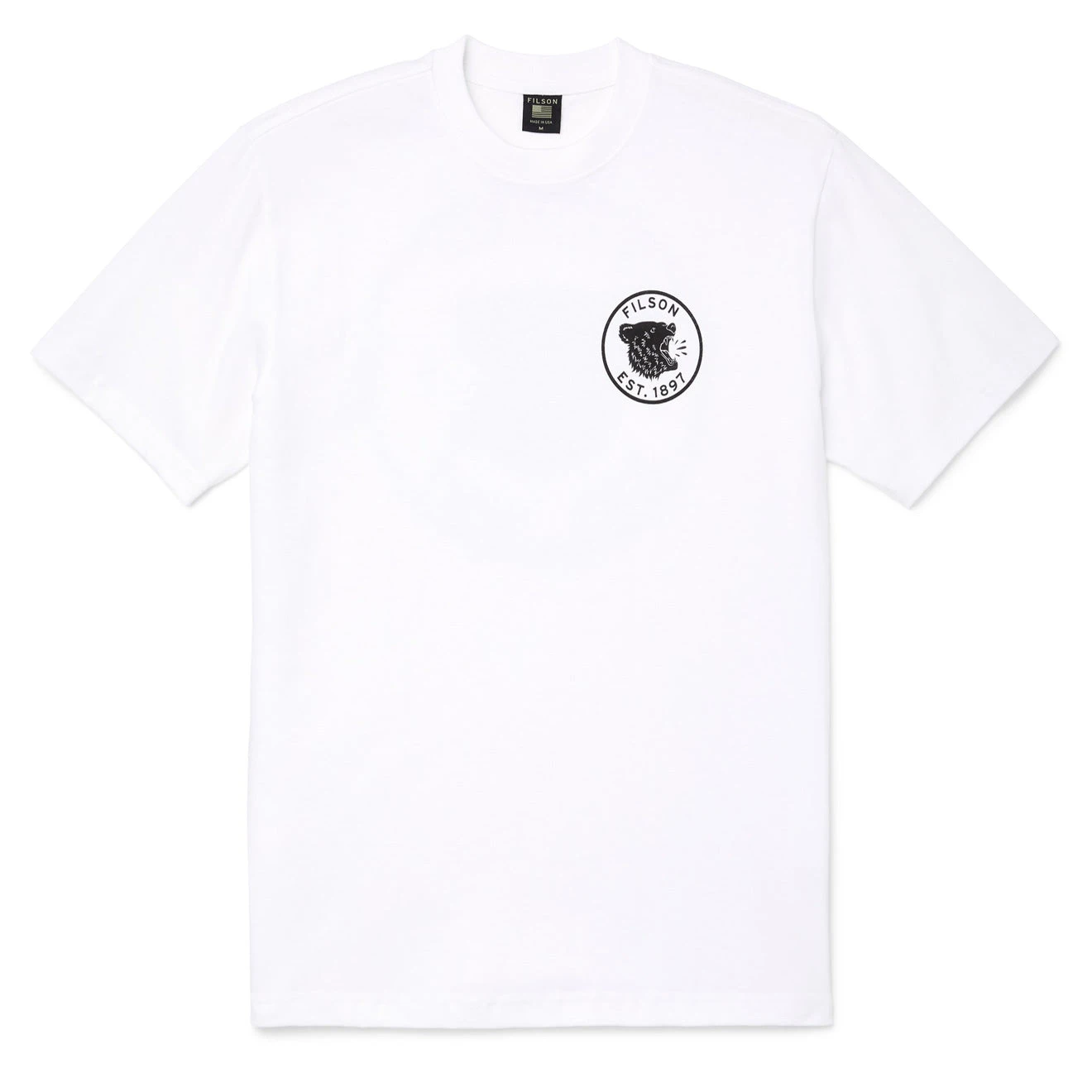 Filson’s Pioneer Short Sleeve Graphic T-shirt is built in USA with sturdy 6.5oz cotton fabric that has a dry-hand feel for year-round comfort. the durable rib-knit collar retains its shape wash after wash.