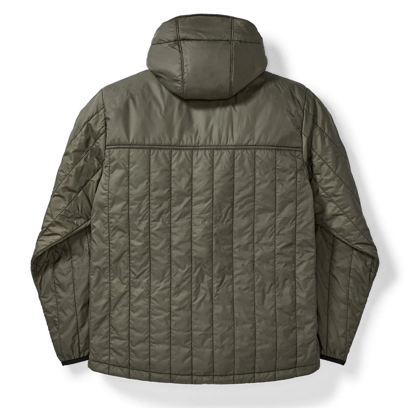 Made with a 1.5-oz. Cordura® ripstop nylon shell and insulated with 60g PrimaLoft® Gold, the Filson Ultra-Light Hooded Jacket is highly packable and surprisingly warm—made to be worn solo or as an insulating mid-layer in colder temperatures. Because PrimaLoft® Gold retains 98% of its warmth when wet, it boasts unmatched versatility in any weather. The full-length zipper has a zipper garage, so it’s comfortable when zipped all the way to the chin. The elastic cuffs and drawcord-adjustable hood and hem ensure a snug fit that seals in warmth, and zippered, Moleskin-lined handwarmer pockets add even more warmth and comfort. Features an interior zippered security pocket and a double layer of fabric over the yoke for durability.