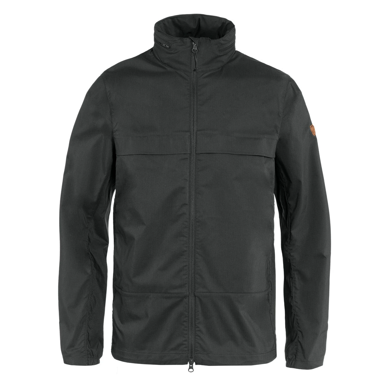 The Fjallraven Abisko Hike Jacket Dark Grey is a light, comfortable and packable jacket for hiking and travelling in warm climates. This jacket is breathability, comfort, and quick-drying, made in G-1000 Air Stretch with recycled polyester and organic cotton. This hiking jacket is packable in its own pocket, lightweight, and easy to store when not used. The adjustable hood can be rolled up and stowed in the collar. Two zippered hand pockets, two top-loaded pockets, one zippered and one with a welt pocket opening, drawcord adjustment at the hem, and elastic edging at cuffs.