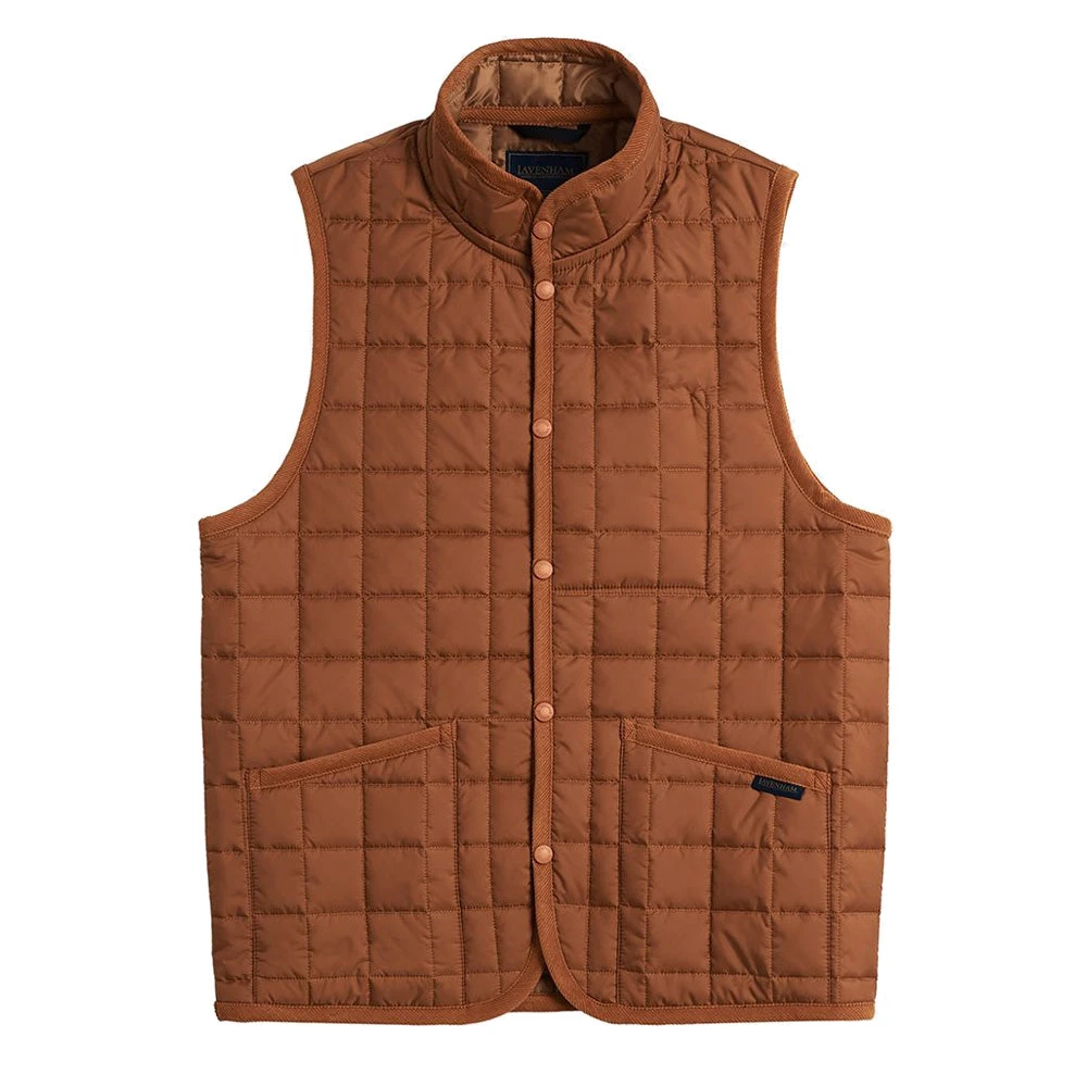 The Lavenham Mickfield Gilet, a proven favourite. This silhouette allows for easy spring layering and works just as well under jackets as it does over shirts and tee shirts as the weather changes. Featuring a lightweight wadding that offers warmth without adding bulk or weight and finished with organic cotton corduroy binding, two patch pockets and a press stud fastening.