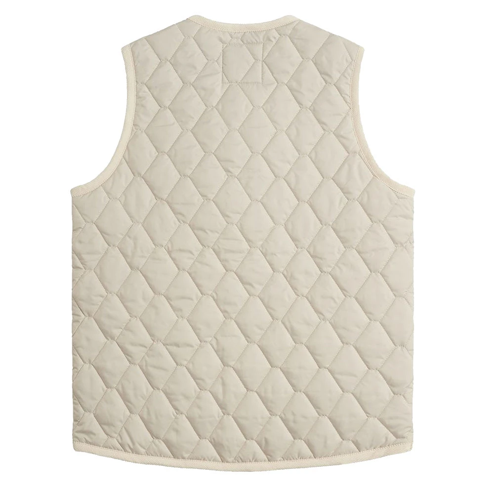 The Thornham is crafted from a recycled polyester in a unique honeycomb quilted pattern. The absence of a collar enables it to sit comfortable over a shirt for cooler summer evenings, but also over a heavier knit as the weather turns colder. Finished with two patch pockets, one internal chest pocket and organic cotton corduroy binding for a neat edge and enhanced durability.