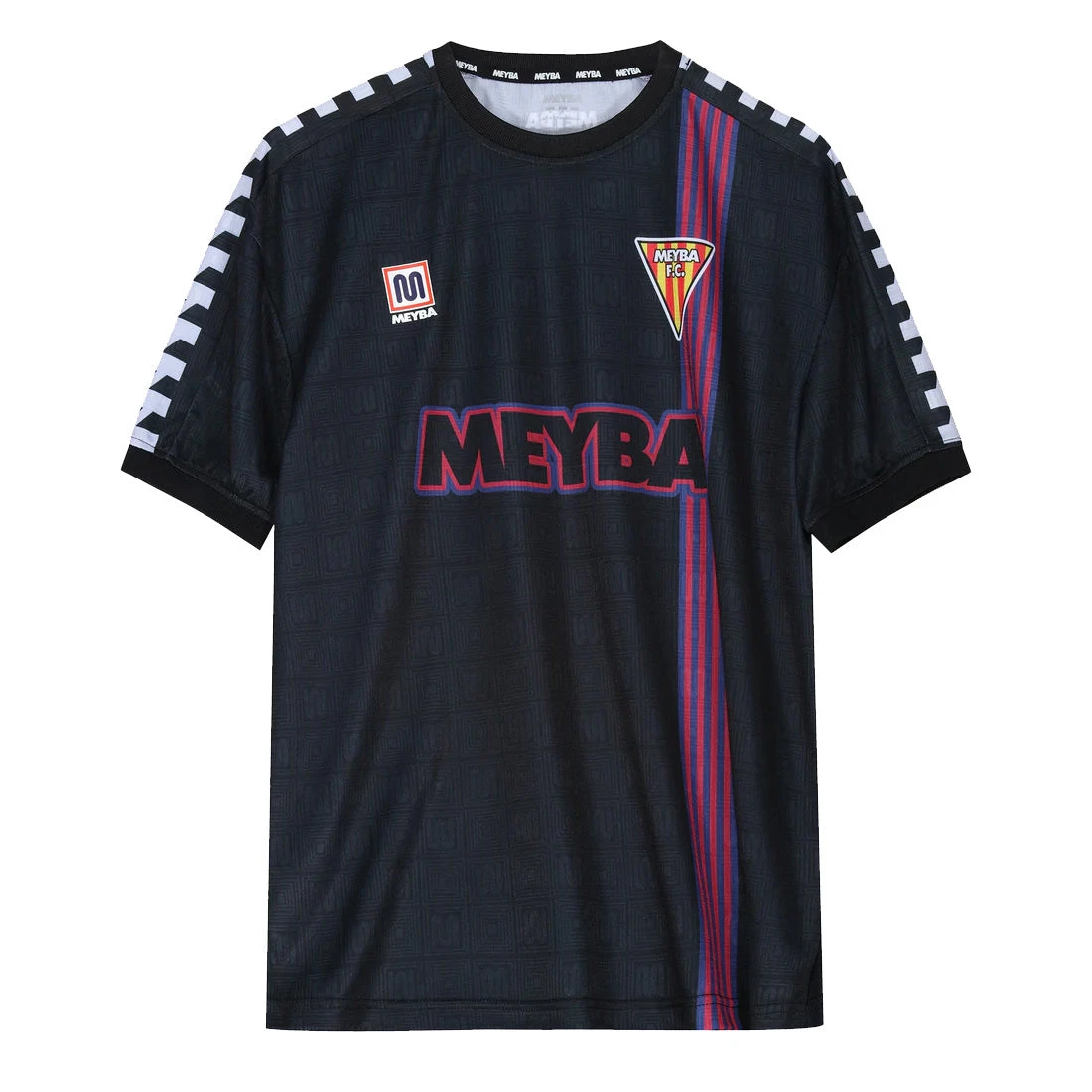 The Meyba Cata Tee takes the famous Barca colours and 70’s style taping on the sleeves to give you archetypal football shirt goodness. Featuring Meyba printed graphics to the chest and a subtle pattern woven through the fabric.