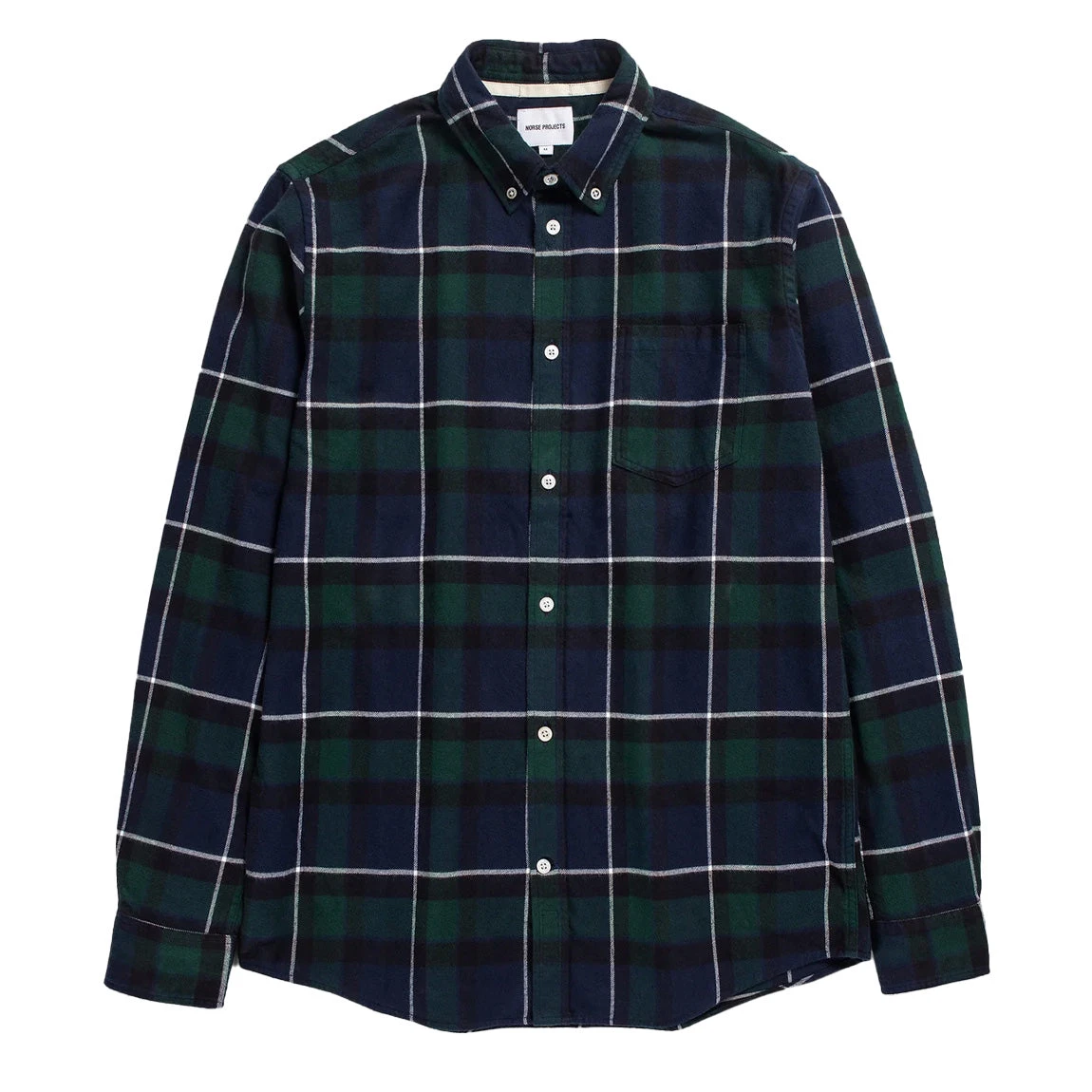 Looking for classic Norse Projects ? The Norse Projects Anton Brushed Flannel Check Shirt is your answer. Crafted from classic 100% organic cotton, which has been woven with melange yarns adding a unique subtle texture whilst ensuring its super soft against your skin. Finished with mother of pearl buttons and a chest pocket to store your essentials. An stunning, timeless piece.