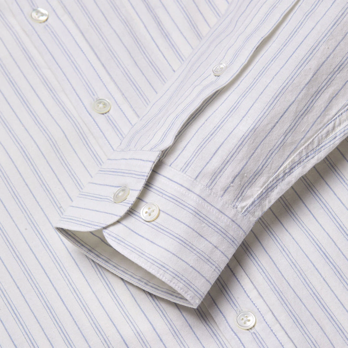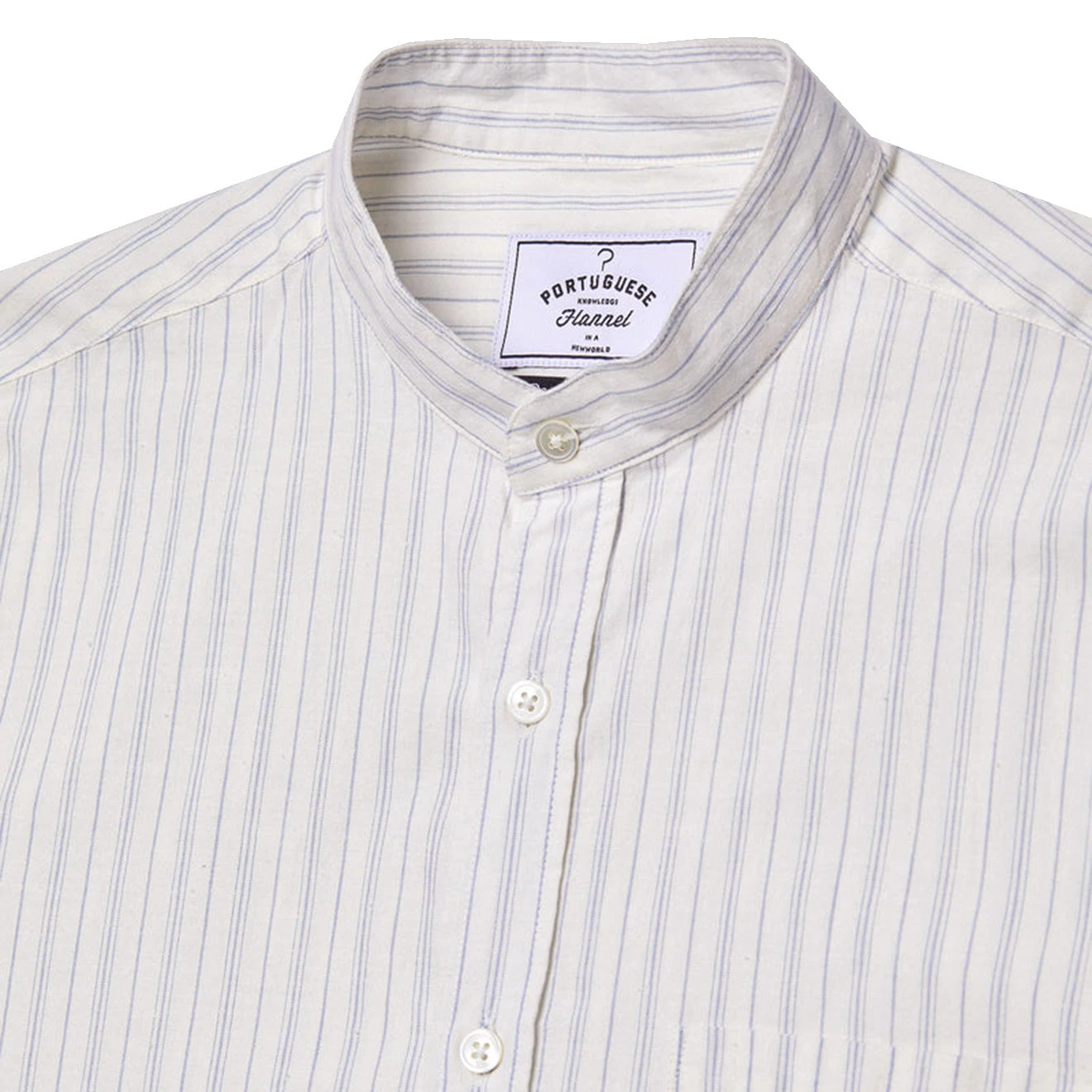 The Portuguese Flannel Mao Suave Shirt is 100% cotton with a classic banded collar and button down placket – this is style you can go back to year after year.