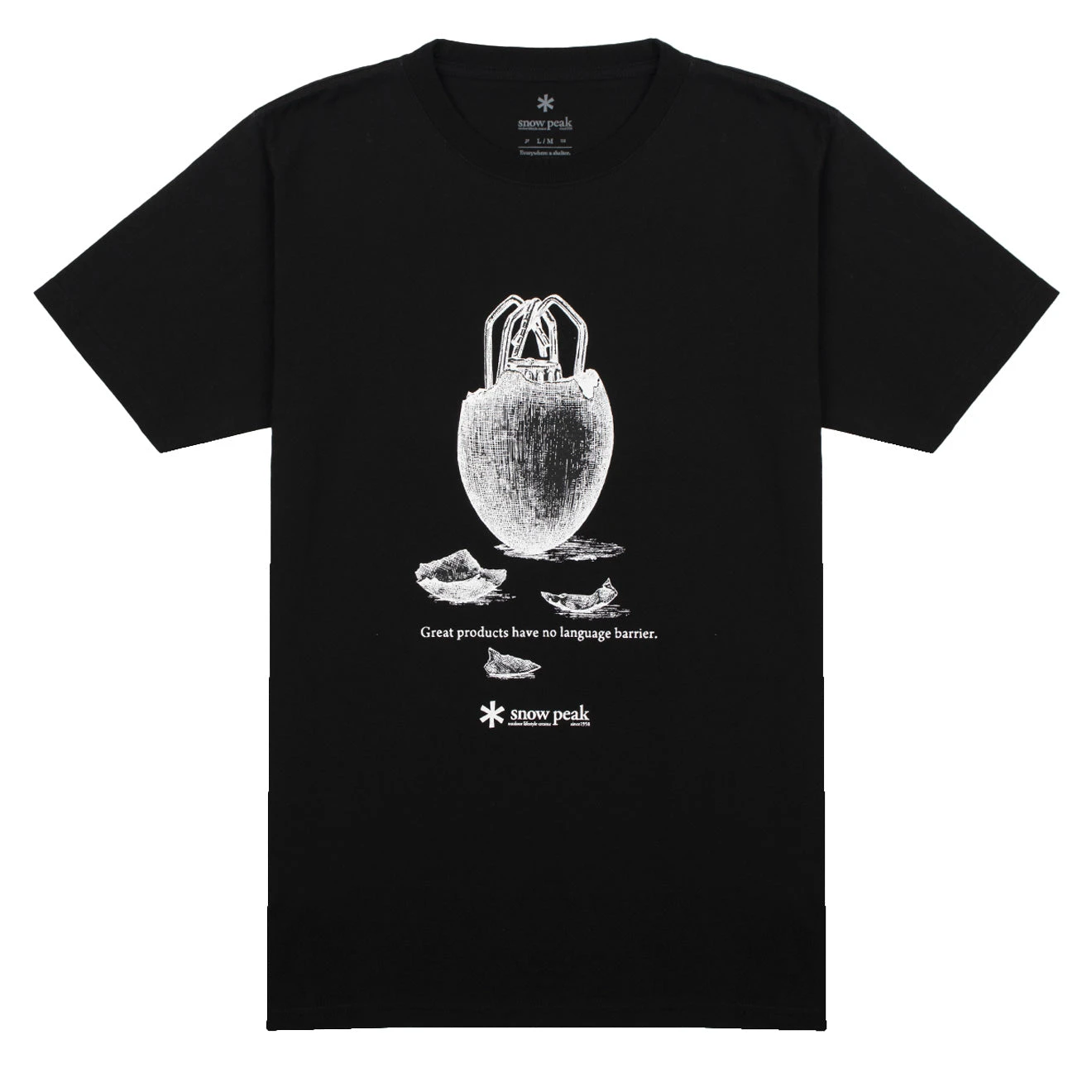The Snow Giga Power Stove Tee T-Shirt features a graphic print across the chest, an illustration designed in Japan.
