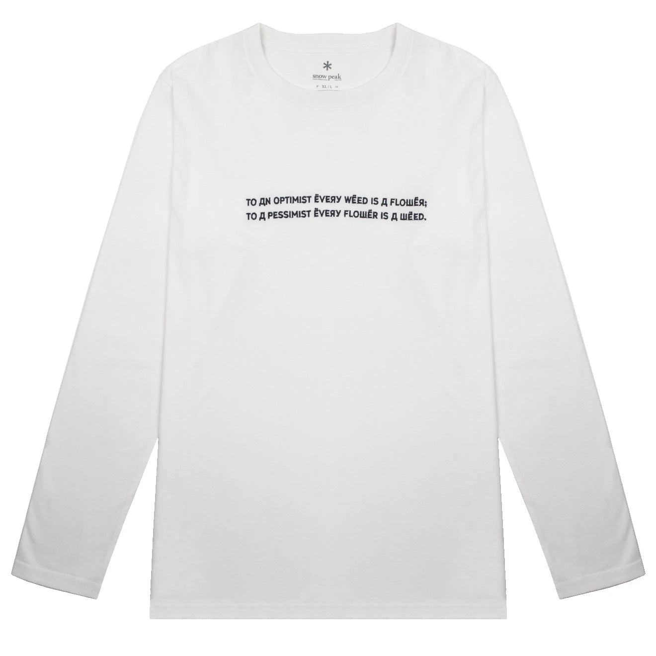 The Snow Peak Typography Tee features a graphic print showcasing the Snow Peak lifestyle and pays tribute to their humble origins.